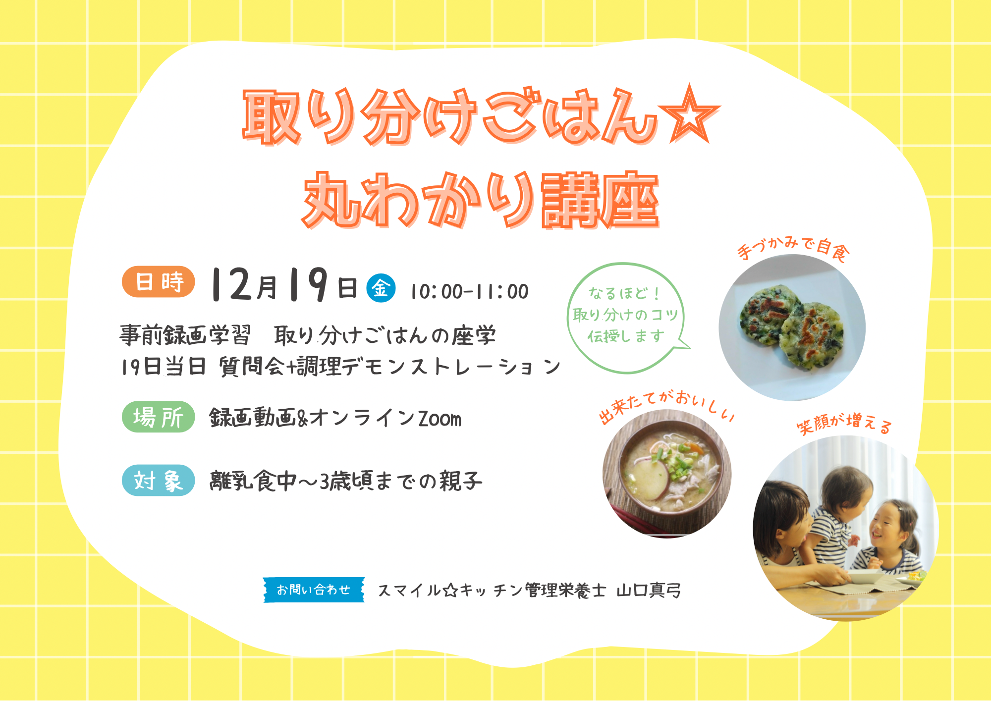 登録後、「取り分けごはん☆丸わかり講座 オンタイム or 録画受講 希望」を明記の上、お申込みください。